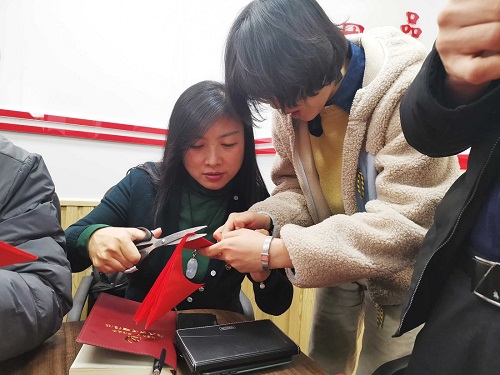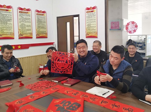 上午10:00,主题党日活动在广告公司党员学习室正式开始。有的党员现场挥毫泼墨,书写祝福春联;有的党员轻盈裁剪,红纸翻飞,一幅幅立体的窗花跃然而生。党员们兴致盎然、一试身手,脸上都洋溢着喜庆的笑容。