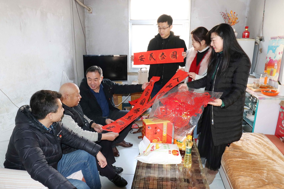 短短半小时,一幅幅春联,一朵朵窗花,呈现在大家的面前。新春慰问送祝福,情暖意更浓!随后,广告公司党支部书记王辉带领支委班子成员和党小组长一行6人来到退休老党员代表朱士杰同志的家中,为老党员送去刚刚写好的春联、剪好的窗花以及大米、面、鸡蛋、花生油、香油等生活慰问品,带去了广告公司全体职工与党员的深切关怀和新春的祝福。