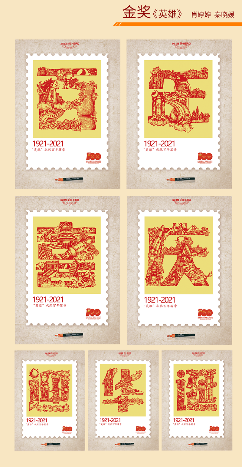 本案以原创手绘为表现手法,用英雄牌针管笔描绘出含有中国河山、中国科技、中国历史、中国精神及中国共产党党徽、中国劳动人民、井冈山革命根据地等元素的“百年喜庆迎华诞”七个大字,并采用中国红和中国黄的明亮色调,突出了“‘英雄’成就百年篇章”的主题。同时巧用“英雄”品牌表达出我们真正的英雄是伟大的中国人民!