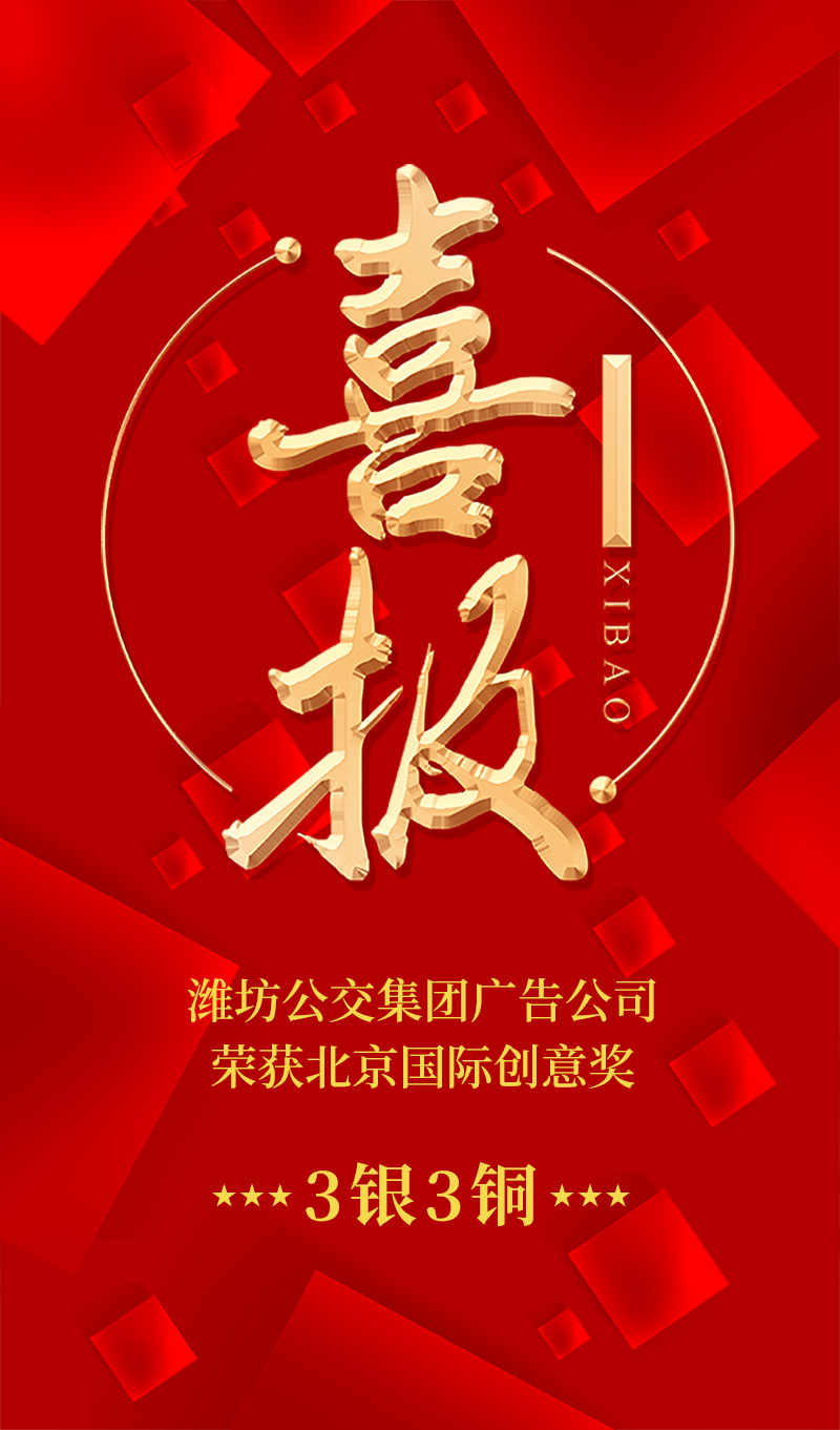 2021年10月21至23日, 第十三届北京国际创意节暨第七届京津冀广告节在北京国家广告产业园区隆重举行。在其中的北京国际创意奖奖项评比中,潍坊公交集团广告公司报送的参赛作品从国内外2400余幅作品中脱颖而出,荣获北京国际创意奖公益类银奖1个,商业类银奖2个(本届商业类金奖空缺),铜奖3个,优秀奖25个的佳绩。