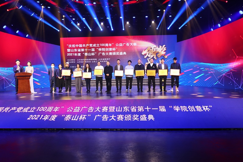12月23日下午,“庆祝中国共产党成立100周年”公益广告大赛暨山东省第十一届“学院创意杯”、2021年度“泰山杯”广告大赛颁奖仪式在济南山东教育电视台演播大厅隆重举办。潍坊公交集团广告公司创意设计团队荣获3金、2银和2个优秀奖,潍坊公交集团广告公司被评为“泰山杯”最佳组织奖广告企业。